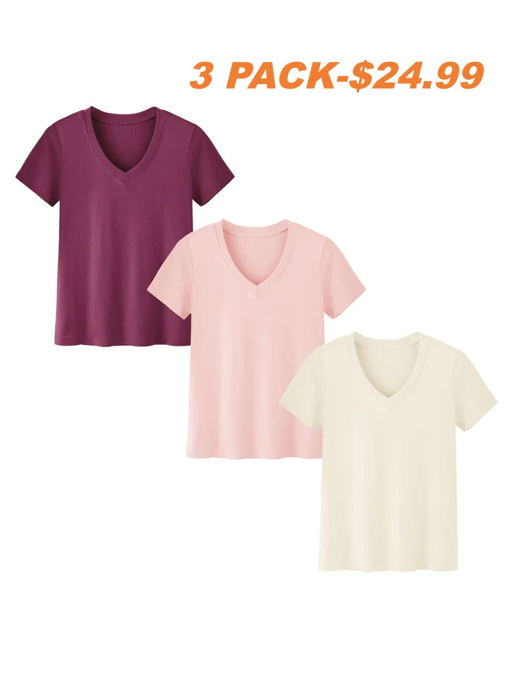 3-Pack Plus Size V-Neck T-Shirts for Women – Lightweight, Loose Fit Summer Essentials