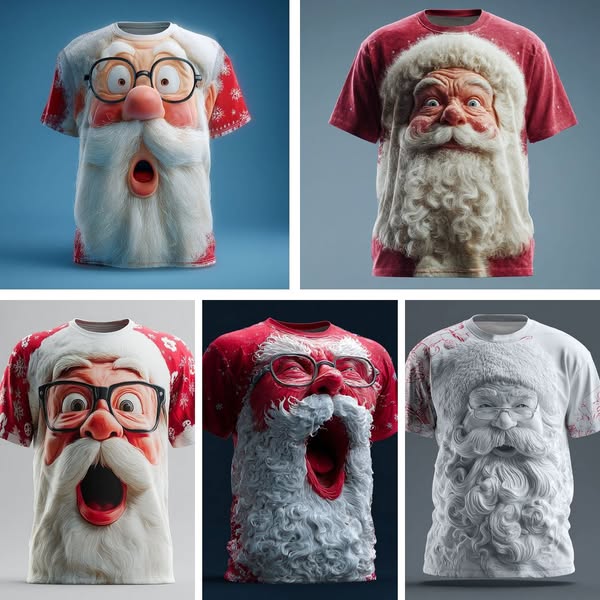 Christmas Men's Santa Claus 3D Cartoon T Shirt Short Sleeve T shirt 3D Print Crew Neck Shirt Daily Designer Artistic Vacation Party Street White 2 Red 3 Red All Seasons Clothing
